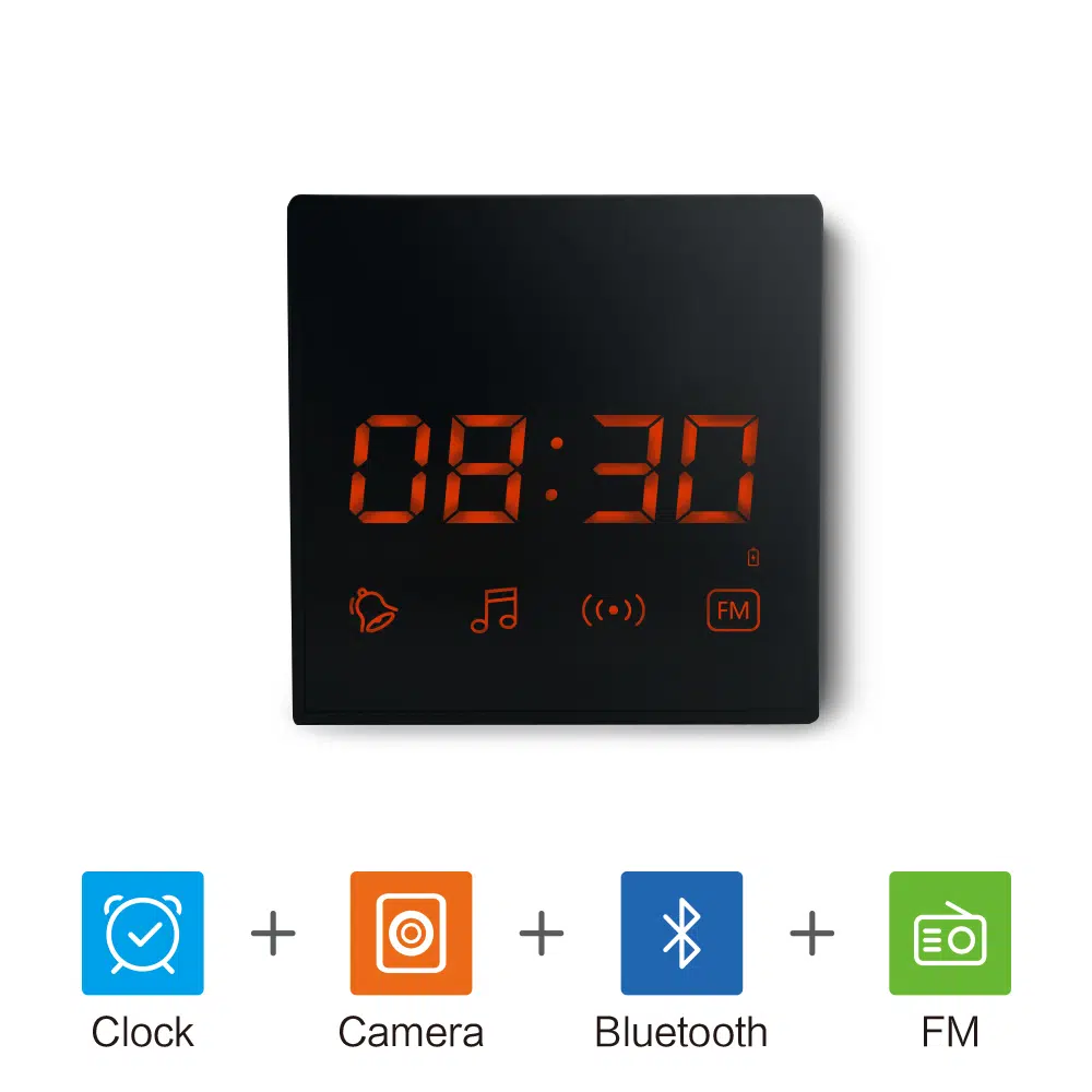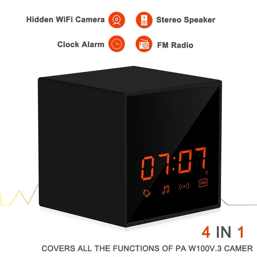 多功能的攝影機,集藍牙喇叭,收音機,時鐘於一身一物多用。雖然集合多項功能,但拍攝質素並沒有因此下降,支援1080高清的拍攝,絕對是性價比之選! 支援手機APP遠程觀看 高清1080P藏式攝像鏡頭 可作藍牙喇叭,FM收音機用途 直線8米移動偵測 最大支援64GB SD卡 鏡片 f = 3.6mm,F = 2.0,水平視角:90度